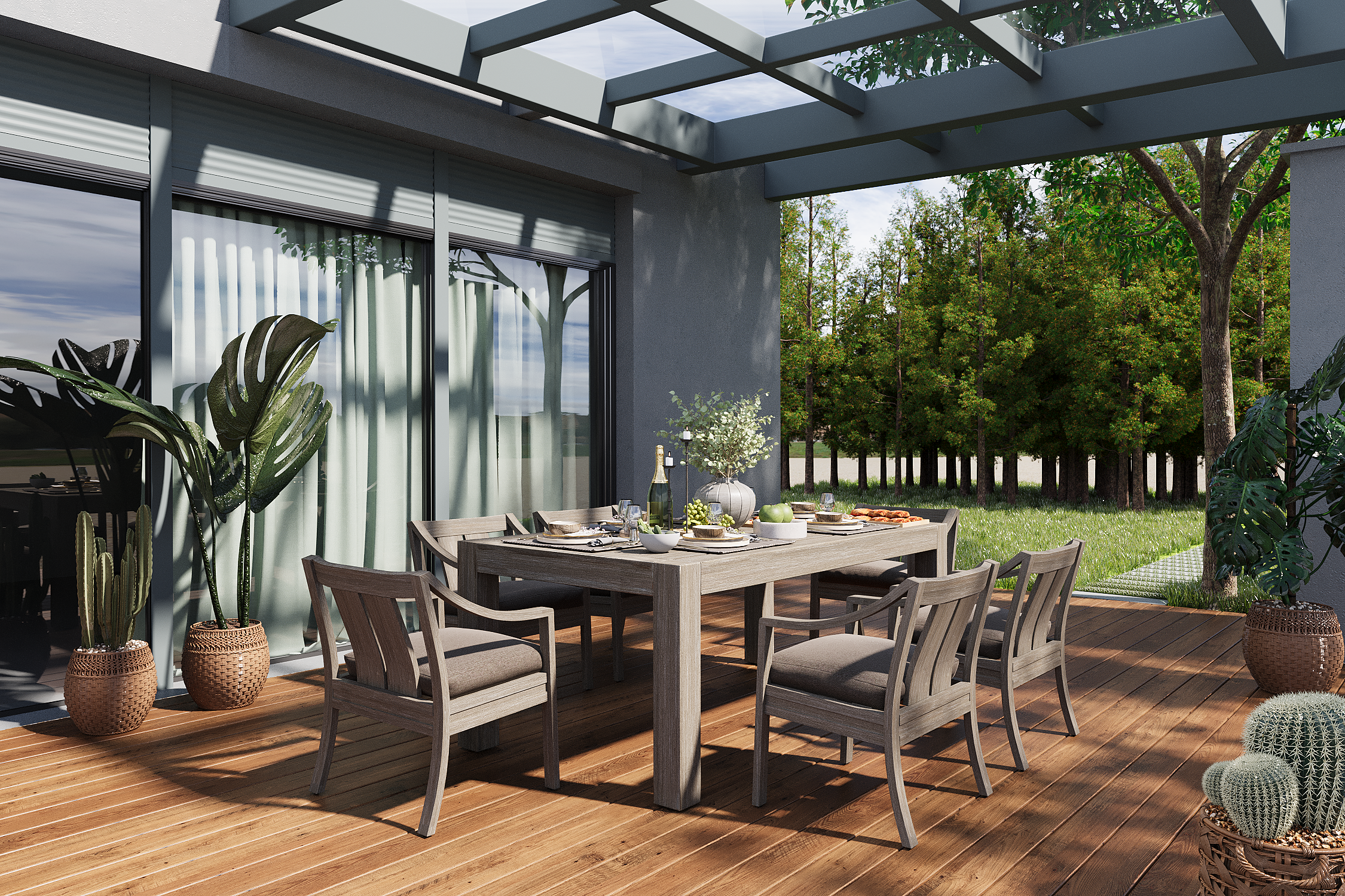 A next-generation, eco-friendly blend of rice husks, rock salt, and mineral oil that looks like real wood yet resists water, UV, and heat. Durable, recyclable, and endlessly shapeable.