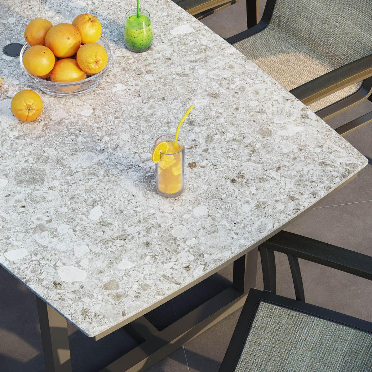 Stone is a porous material! Stone is a durable yet porous material that will last forever if properly maintained. Your stone tabletop has been sealed using a special treatment to resist moisture penetration and staining. The sealer has a very long life, but does require proper cleaning and maintenance to maintain the integrity of the tabletop. It’s important to remember the following to maintain a beautiful outdoor dining surface for years to come: