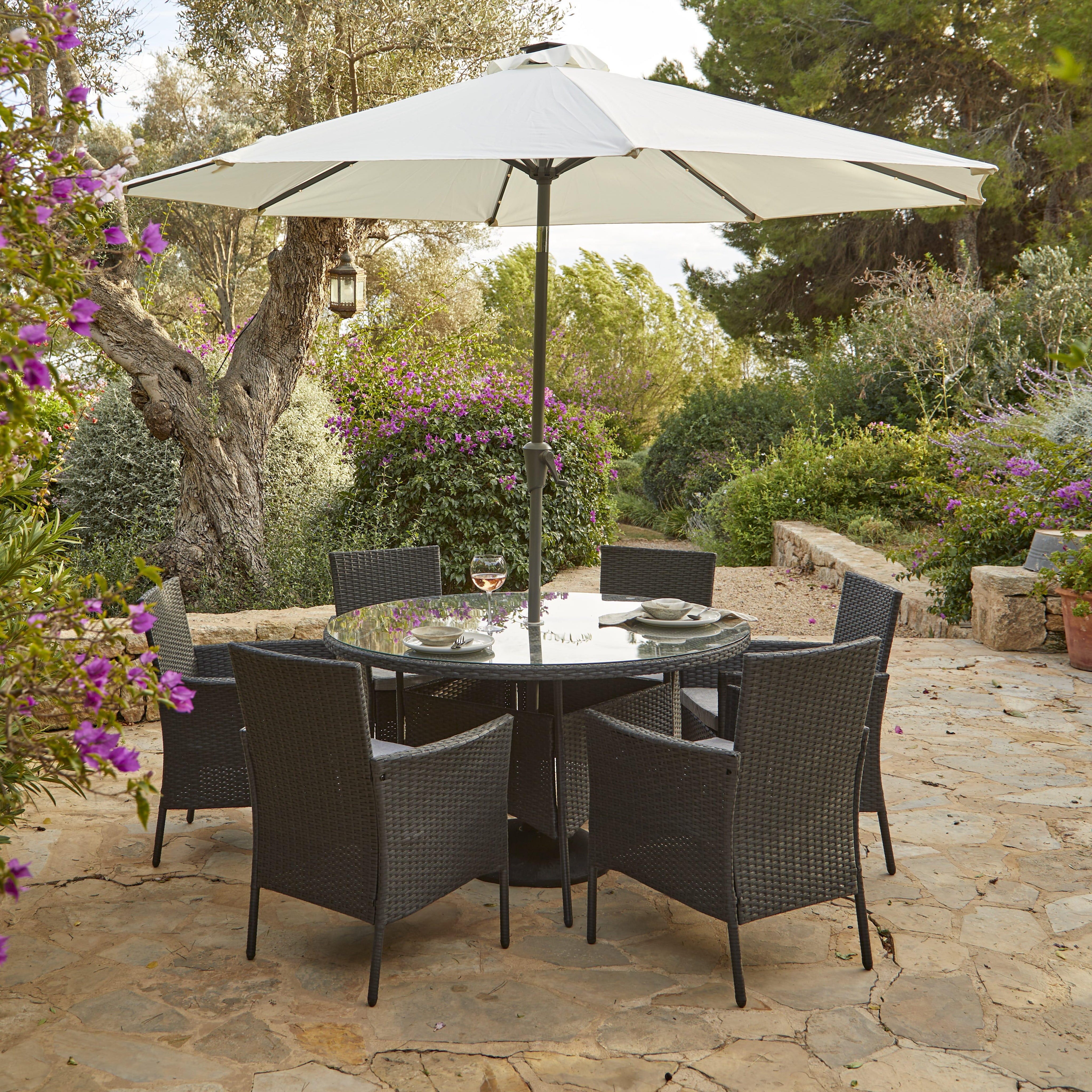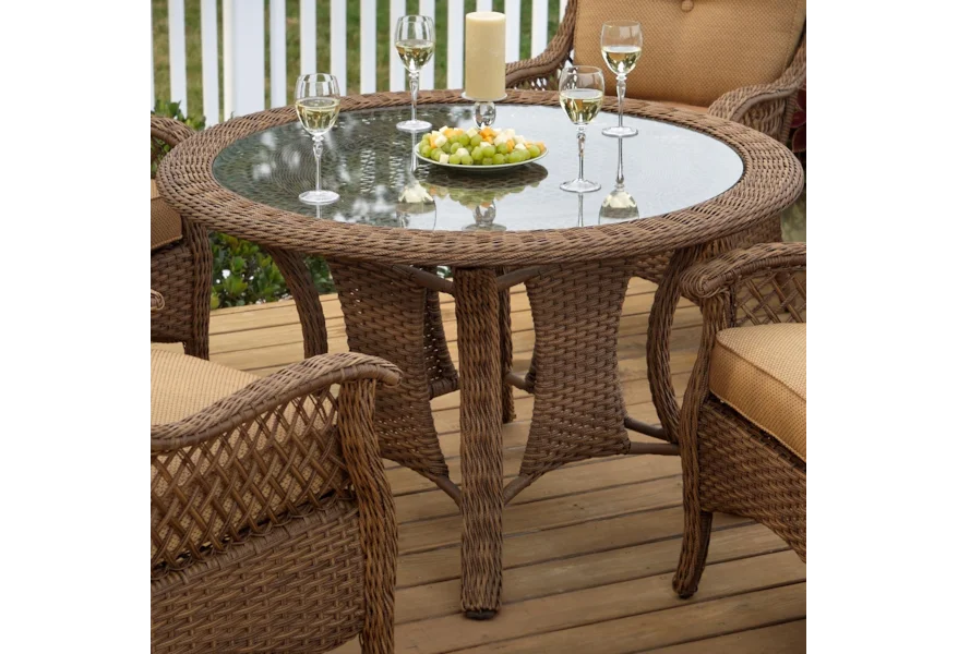When using an umbrella with a table, always make sure the protective ring is in the umbrella hole and the umbrella is secured using a sturdy umbrella base. Never use an umbrella without the protective ring or an umbrella base.