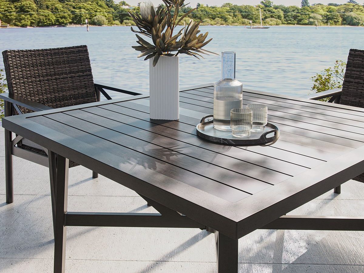 Our tabletops are available in a wide spectrum of materials—sintered stone, Resysta®, metal slats, PS wood, porcelain tile, and tempered glass—each engineered to perform outdoors. This range allows designers and homeowners to express their own sense of style while maintaining Agio’s signature quality.
